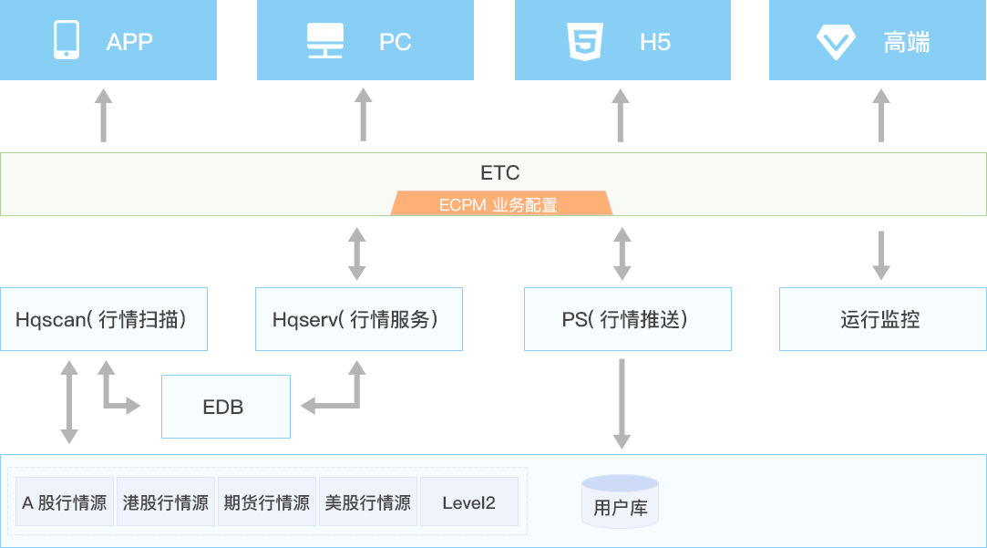 EMD行情中臺是具備全市場、高可用、標準化、低時延特性的行情服務平臺,由行情服務、行情掃描、行情庫組成。行情庫系統(tǒng)采用內(nèi)存數(shù)據(jù)庫系統(tǒng),并針對查詢進行優(yōu)化,以滿足證券行業(yè)對行情處理的要求。行情庫支持多種行情源的接入,包括深滬Level-1、Level-2行情、期貨行情、港股行情等。